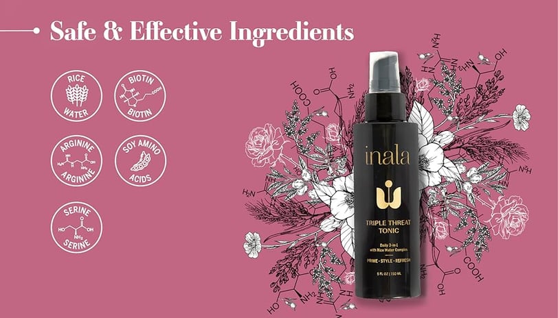 The Inala hair product boasts a blend of high-quality, natural ingredients that synergize to enhance hair health. Some of the key active ingredients include: